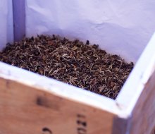 高級茶にしか使われない立派な木箱入り。通常のダージリンならば18キロほど入る木箱に、6キロしか入らない・・・さすがの美しい茶葉です。30キロ弱の小さなロットです。